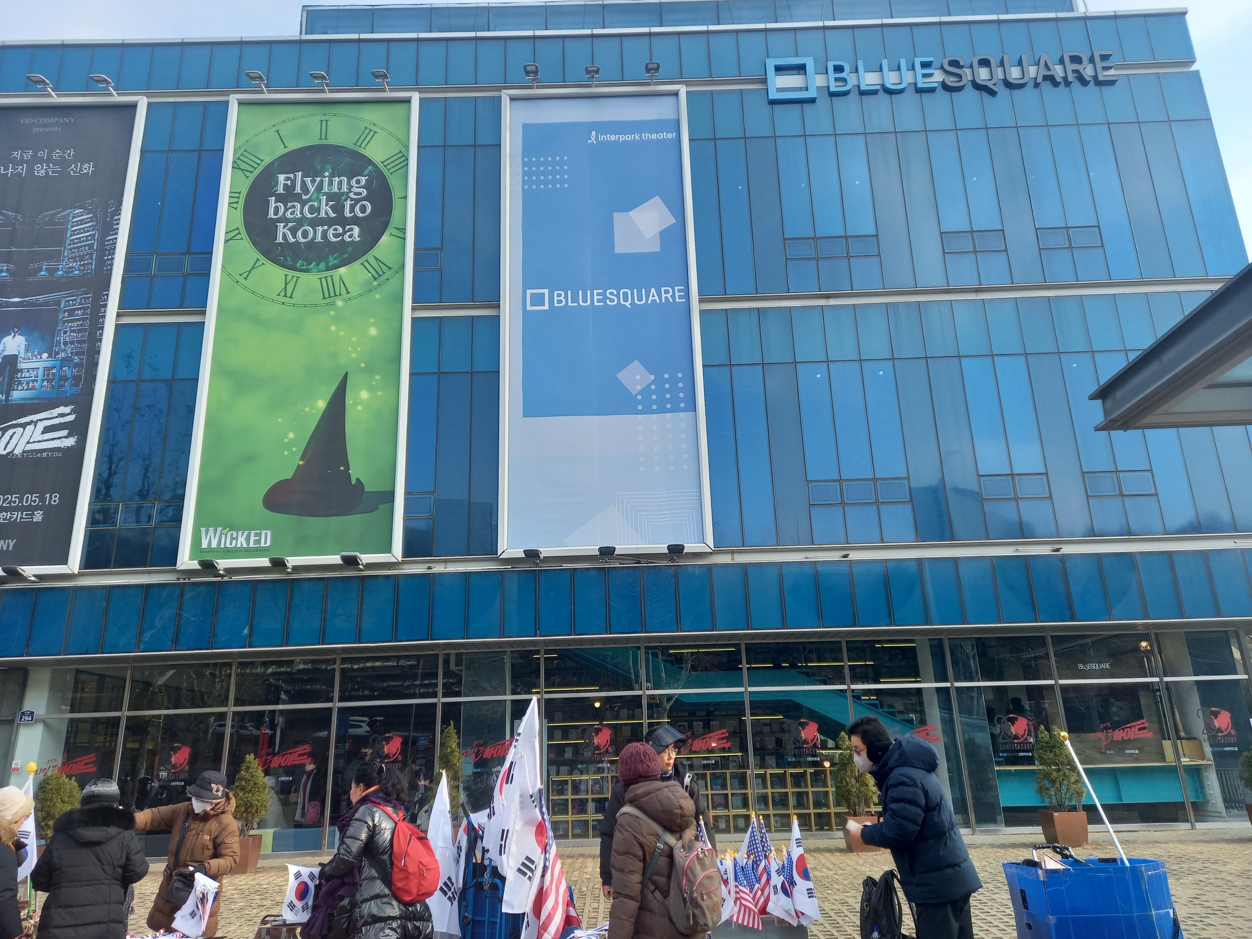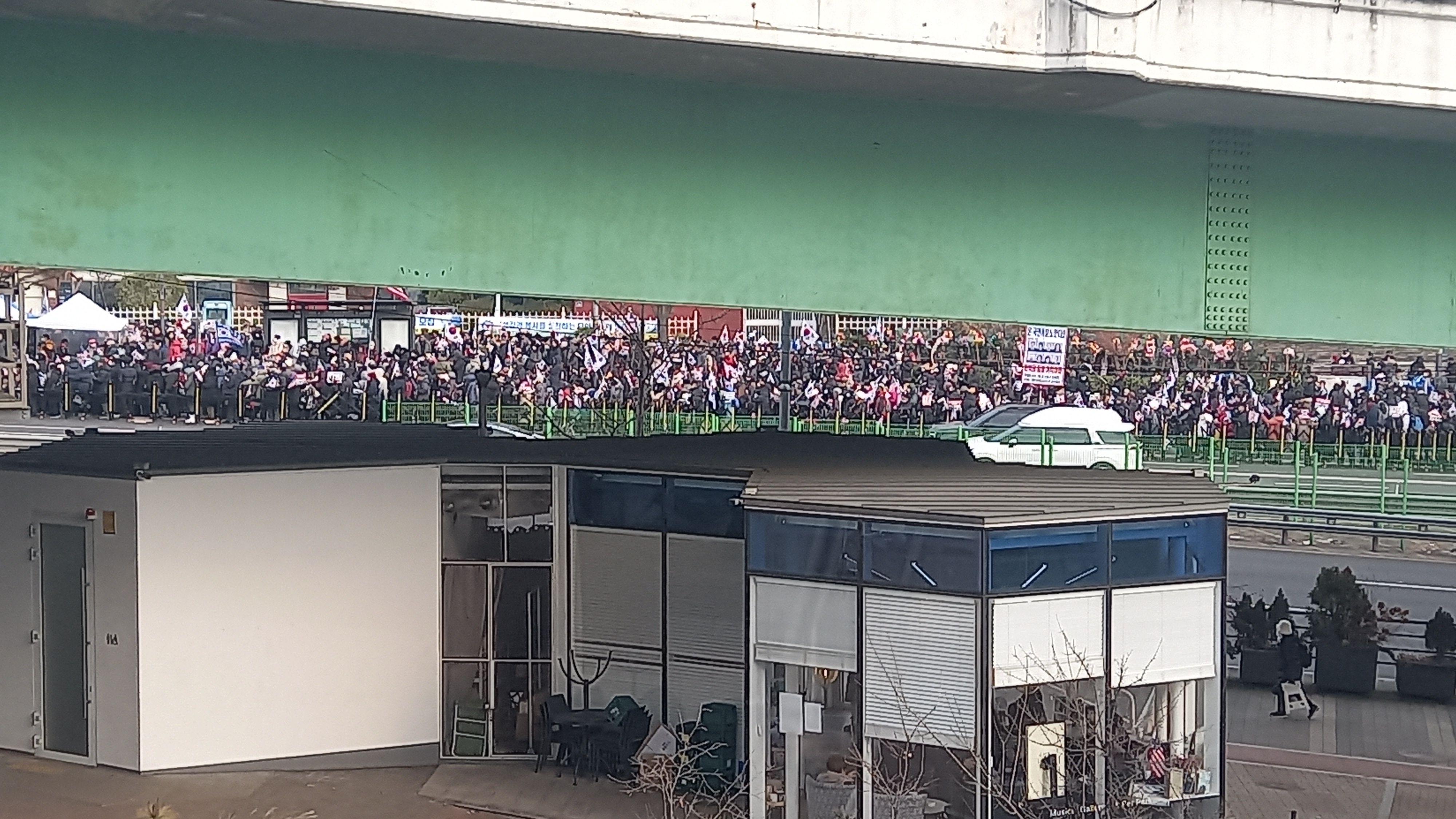 外でデモるじーさんばーさんたち(ユン大統領支持層は高齢層が多い)が