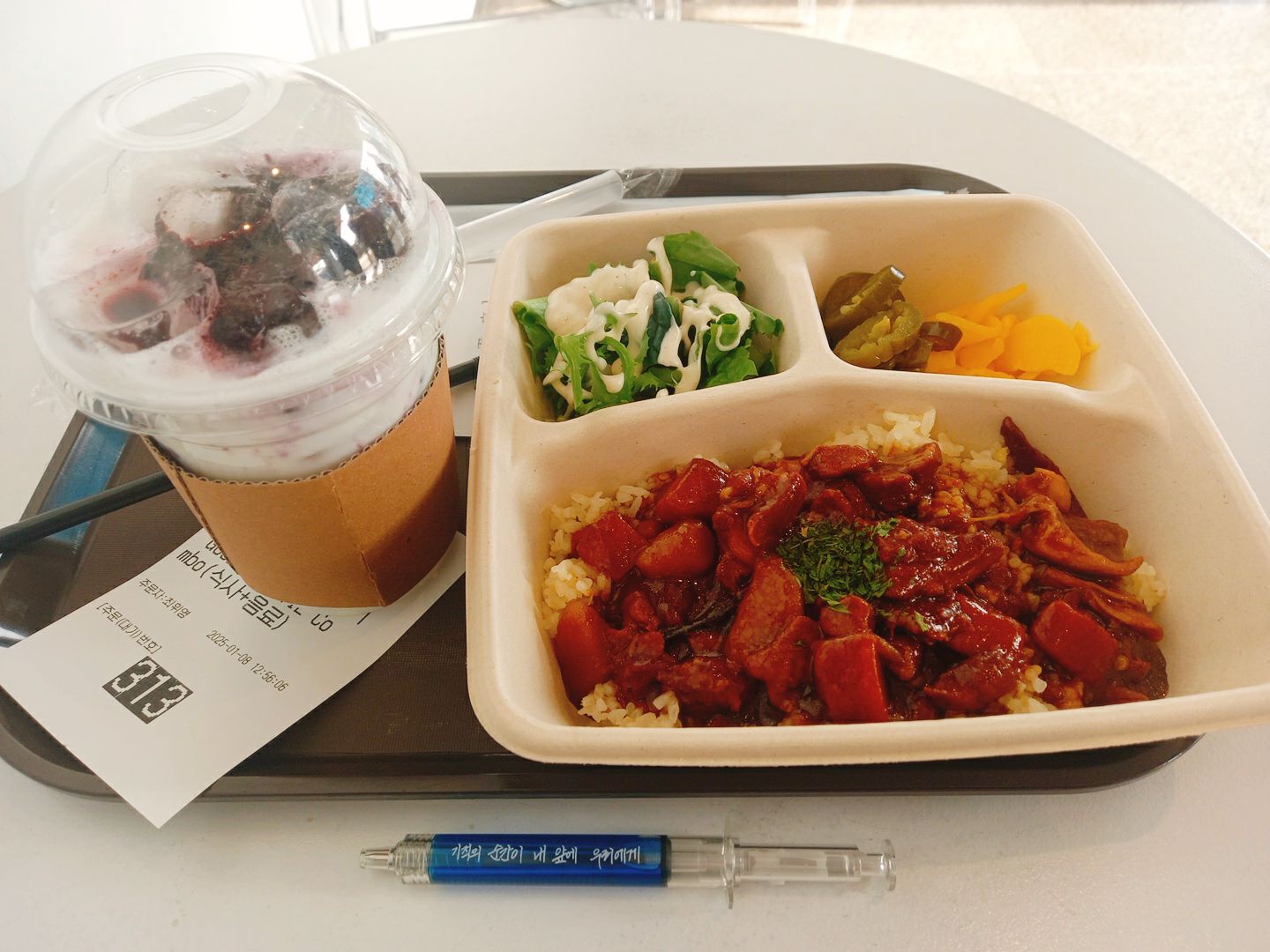 チキンガーリック丼+ヨーグルトドリンクのセットで