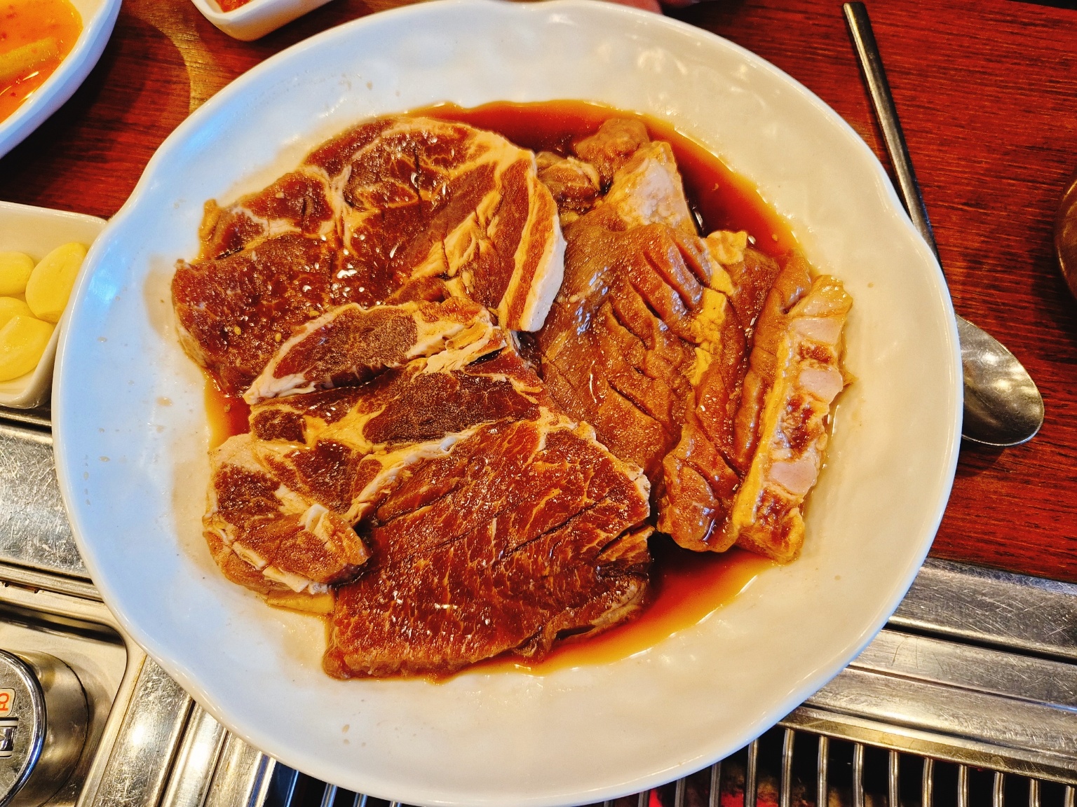 1人前17000ウォン(1760円)の豚カルビ定食を御馳走になった。