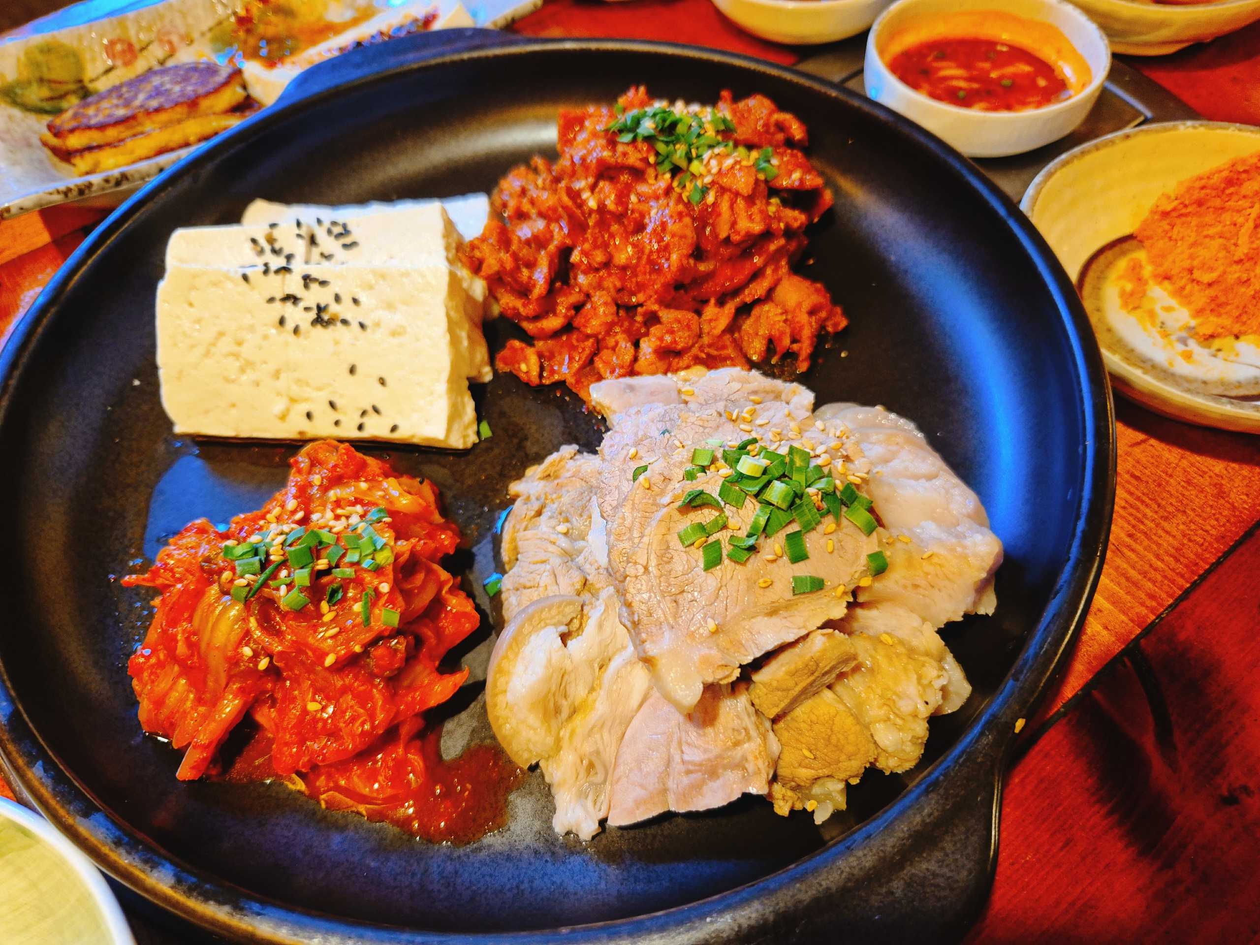 近所の豆腐&ポッサム(茹で豚)のお店。