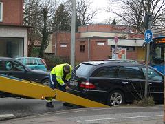 先日こんな光景を偶然みかけました駐車禁止によるレッカー移動結構路駐が多いドイツですが、ここは駐禁ゾーンだったみたい。珍しいのでレッカーのおじさんの一部始終を相方と一緒になって観察してしまいました(笑)写真まで撮って私たちって結構ヒマ人まず最初に駐禁の車の後部をチェック。ワイヤーを引っ掛ける部分をみつけ、ワイヤーを取り付ける。そして証拠となる写真をおじさん自らデジカメで撮影後でイチャモンをつけられると面倒ですから☆証拠さえあればケンカになっても負けませんからね~そしてスイッチひとつで車をムリヤリ(?)トラックに引き上げます。その間にも「ヤバイヤバイ」とばかりに駐車していた他の人たちが大慌てで車を移動させに出てきましたでもよくよく考えたらこのレッカー車、せいぜい一台しか乗せられないんじゃ・・・(笑)?ひと仕事終了お疲れさんでやんした