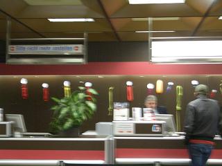ベルリンの信号はカワイイその名もAmpelmann(Ampelは信号、mannは男)このマークのグッズを扱った専門店、あちらこちらにあります。今回どこぞのブログでこのAmpelmannのレストランができたと書いてあったので、行ってみる事にシュプレー川がそばに流れていて、夏はテーブルが表に出ていい感じになるとの事でしたが、今回は真冬なのでそんなに期待はしていませんでした。高架の下にあるお店で一見パっとしませんでしたが、中に入るとなかなかいい感じ。どうやらイタリアンレストランみたいです。入り口に青信号が。。。入れって事?凝ってますね~。テントもAmpelmannランチタイムなのでランチメニューがありましたが、安ッ。ベルリンでも場所によっては値段が恐ろしく高い店と、ちょっと街から外れると安くなる所があるみたいです。2人ともTagessuppe(今日のスープ)を頼み、メインはペンネアラビアータと、カラマリ(イカ)のパスタです。折角だしこの付近を徘徊。いい雰囲気の町並みです。最寄りの駅。いい感じ~Hackescher Marktという駅です。その近くにはマルクトも出ていて賑わっていました。ひときわ目立つこんなお店も・・・どうやらファッション関係のお店みたいですまっ、まぶしい・・・