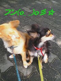 お互い「フン!!」って感じ。なんでぇ~~?早く歩きたいの~~ ウルウルお目目で訴えているテンちゃん♪ もう、寝ちゃうワンwゞ(≧ε≦o)ブブブ by TEN ララちゃん!なんか、お目目がたれ目??まだまだ、2チーをカメラ目線にするのは、未熟者のきゃみでした…。(●′ω`●)