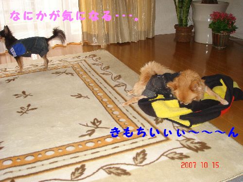 ナニカちかよったら へタレのテンちゃん ビビッたようで、逃げようと 立ち上がった瞬間が 撮れました 今日は 朝から寒い寒い でも 昼すぎから でたので、ララテンは 庭へGO 洗濯物が お見苦しくて スンマセン ふたりとも 上手に にあたって 気持ちよさそう ララさん あさって見ちゃってるよ ガクランとセーラー も可愛いじゃん¥990ララには コレ!って思ったんだけど、サイズがなかった~くやしぃ~¥980 テンさまへの プレは こちら おまかせ&無地ウェア3枚セット ¥1000送料込インナーに着るのに 無地が活躍するかな?って 思ってさ。デニムオーバーオール こっちも送料込 ¥1000!!! ケーキもありだったんだけど、テンあまり食べないんだよねぇ~~~~なんでか わかんないんだけどさっ。 お祝いのコメ ありがとうございました そして きゃみへの プレゼント誰から? テンからです。JUKIのロックミシン ひゃぁ~~~ 嬉しい テンちゃん ありがと。 応援 ありがとう