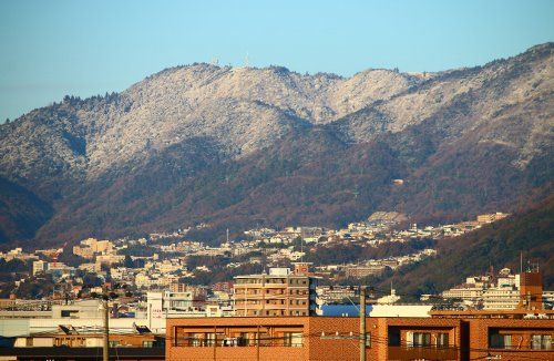 朝は六甲山の山脈がうっすらと雪化粧していましたが