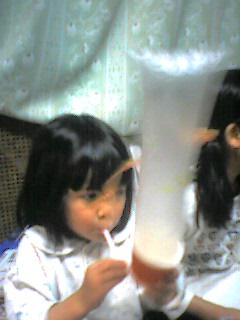 こだまっちが今日保育園から持って帰ってきたおもちゃ。保育参観で作ったのかな??紙コップの側面の下のほうに穴を開けてそこにストローを通してストローの先に適当な長さに切った傘の袋をつけてあります。ストローをフ~~と吹くと袋がにょろ~~っとコップから出てきます。