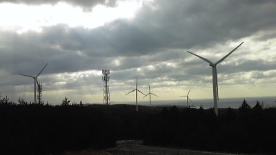 日本海と有福温泉の間にそびえ立つ高野山。この山の頂上付近に日本海に向って、11基のプロペラが・・・そう、風力発電所です。有福温泉のある山陰地方、読んで字のごとく山の陰。天気の悪い、暗~いイメージが持たれます。住んでる人間からすると、あまり嬉しくないイメージですが・・・まあ実際、晴れより曇りが多いのは実感しますね~僕若旦那、実はUターン前に住んでいたのは、ハレの国宮崎!!15年ぶりに帰ってきた時は、天候の違いに愕然としました。(↑若女将は生粋の宮崎人なので、もう大変・・・)話それてしまいましたが、とにかく山陰地方の天気は良くない!住んでいる人は、あまり信じようとしませんが・・・しかし、天気の良くない日には、日本海から恵みの風が吹いてきます。この風を受けて、山の上の風車がグルングルン回るのです。そして、電気を産み出します。11基の風車がグルングルン回っている風景は、いろんな場所から見れ、まさに壮観です。もちろん、有福温泉からも見る事ができます。遠くに眺める風車も良いですが、近くまで来てプロペラの風切音を聞きながら見上げるのもワクワクしますよ~ちなみに、江津市内ここ以外に浅利海岸に9基の風力発電があります。まさに電力の町江津、エコの町江津!! ですね~なので~「ここで生まれた電力は、江津市民に安く売ります~」な~んて事にならないかな~ と思うのは僕だけですかね・・・注:決して中国電力さんに値下げ要求してる訳ではないですよ~ 安いに越したことはないですけどね~