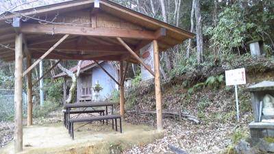 ことある事にご紹介しています「こんぴら山桜公園」です。昔の形を取りもどそうと、自治会を中心とした地元の有志で整備を始めたのは、既にご紹介の通りです。木の伐採からはじめ、遊歩道の整備、温泉神社やお地蔵さんの清掃、そして新たに桜の木を植樹。そんな「こんぴら山桜公園」の現状をご報告~~頂上に上がると温泉神社の前には、ちょっとした広場があり、周囲は樹木とお地蔵さんで囲まれた、少し神秘的な雰囲気です。最近では、地元の人もなかなか上がる人が少なくなってしまいました。山は人が立ち入らないと、どんどん荒れてしまいんます。有福温泉に入湯に来られた皆さんが、少しでも上がっていただくと本当にありがたいですね~有福温泉お越しの際は、なるべく山のぼりできる履物でどうぞ~~先日、登ってみたら休憩所の屋根に蜂の巣(製作中)が・・・春に向けて巣作りの真っ最中でした~少しづつ有福温泉にも春がやってきま~す。って言うか、やっぱり駆除しないといけないのかな??