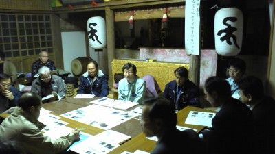 有福温泉山の谷間の温泉地なので、あまり広い土地はありません。なので、温泉街には公民館や集会所の様な施設が作れません。集まって話合いをしたい時はお薬師堂の本堂を利用します。以前ご紹介したお薬師堂です。集まる日は、自治会の役員がお賽銭お参りをして本堂のそうじ、会場準備をします。今回の話合いの内容は、年明けより始まる温泉街路改良工事の説明会。工事を行う業者さん、行政関係の方々が説明に来られてます。聞く住民の皆さんも真剣です。有福温泉で道路工事を行うと、どこかを通行止めにしないといけなくなり、ぐるっと迂回しないと、家に帰れない人が多いんです。住民生活に支障をきたす事に関しては、しっかり意見します。この様に、お薬師堂は様々な話合いの会場となります。自治会の役員会、総会、住民説明会・・などなど・・・・・こんな会議をけんかなく、仲良くまとまる様に、お薬師堂のお釈迦さんにも聞いててもらい、見守ってもらいます。お釈迦さん、本来は有福温泉の源泉を見守るのがお役目なのですが、最近では、住民も見守らなければいけなくなり、大忙しですね~有福温泉、高齢化が進み本堂の畳の上に座れないひとが増えました。手作りいすが登場しました。これ皆一人で作られたんですよ~三浦のおばちゃんありがと~