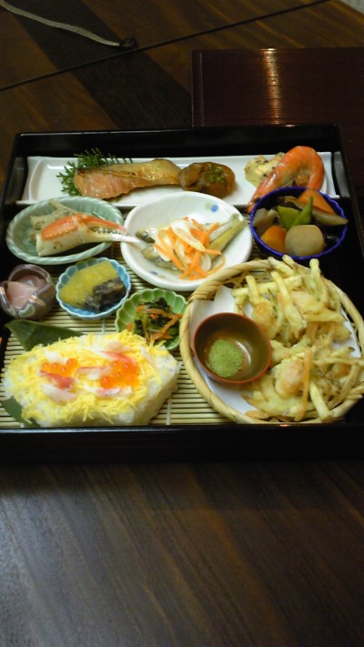 有福温泉の近くに、島根海洋館アクアスがあります。車で15分のところです。島根海洋館アクアスと言えば、少し前ソフトバンクのCFで有名になった、白イルカの島根のおじさまがいるところです。そのお陰で、有福温泉にも多くのお客様が回ってこられます。特に、お子様連れ、家族でのお客様が多くいらっしゃいます。小川屋では今まで、調理長がお子様向けの料理も作っていたのですが、お子様向けの料理は、主婦の方が上手だという話になりいまでは、若女将が担当しています。上の写真が、お子様向けのキッズプレートです。本日お泊りのお子様にお出しするものです。内容は若女将の気分次第で・・・と始めたぼですが、最近では、献立を考えるのも大変だということで、お客様にお子様の好みをお聞きすることもあります。ご予約の際、お子様の好き嫌いも伝えてみて下さい。献立に困った若女将、大喜びで飛びつきます~~小川屋は、せまい敷地に入り組んで建っています。なので、館内は階段だらけ、しかも入り組んだ迷路のようになってます。たまに、お客様も館内で迷われて、助けを求めにフロントに下りてこられます。しかし、この迷路の様な造りはお子様には大好評です。ぐるぐる回る階段は、楽しい遊び場となっています。何度も何度も上がり下り、上がり下り・・・・慣れている僕たちでも、そんなに走れば息が上がります。お子様本当に元気です。階段にすぐ疲れてしまう大人向けにも、若女将が調理の腕をふるいます。1泊2食の夕食がお弁当になったプランです。会席料理は、量が多くて食べきれない・・・というお客様、結構多いのです。丁度良い量のお弁当で、しかも金額もリーズナブルと、喜んでいただいております。楽天トラベルご参考下さい。