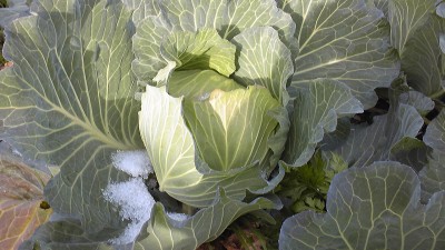 有福温泉町本明(ほんみょう)地区では、数件の農家の方が共同でキャベツを栽培しています。皆さんで畑を提供しあって、みんなで協力してキャベツを栽培されています。僕も、ここの皆さんと仲良くさせていただいており、収穫したキャベツで、市場に出荷しない残り物を格安でわけていただいています。残り物と言っても、少しサイズが規格に合わないだとか、少し葉が傷ついているだとか、葉の色が悪いだとか、この程度の事で、食べる分には全く支障ありません。特にうちの弟は江津で鉄板焼きの店を営んでおり、お好み焼きがメニューの中心なので、キャベツ大量に使います。本当に本当に、助かります。ちなみに、上の写真が今日頂いてきたキャベツ!!これ全部(3箱)で1000円からおつりがきました!!(↑本当にいいの~? 安すぎでしょ!!)いっこうさん、まさあきさん、本当にありがと~~~今日が今年最後の収穫だったそうです。 お疲れさまでした~~都会の方は、地面に生っているキャベツなど、見る事ないのだろうな~外側にどんどん葉が巻いて巻いて、キャベツは大きくなるのです。葉がしっかり巻いたキャベツが、大きく重く良いキャベツです。下の写真は、年明け早々に収穫予定の畑です。年を越す間に、しっかり葉が巻いて立派なキャベツになることでしょう。がんばって成長しろよ~~~