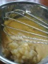 | 4. | (できれば室温に戻しておいた)卵を加えて混ぜる。バナナを入れる。 | ![]() |
