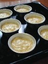 | 6. | これは8号(7cm)のプリンカップ。←普通のマフィン型と同じ大きさ。 170度に余熱したオーブンで約25分。 |