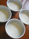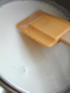 | 4. | 牛乳とグラニュー糖15gを鍋に量り入れ(バニラビーンズを入れる場合はここで投入)、中火で砂糖を溶かす。 沸騰直前で火からおろし、板ゼラチンを絞り入れ完全に溶かす。 |