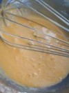| 6. | まずメレンゲの1/3を加えよく混ぜてから、残りのメレンゲも入れて混ぜる。 メレンゲの固まりを残さないようによく混ぜる。泡をつぶさないようやさしく丁寧に。 |