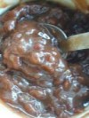 | 9. | ゆであずきの粒をスプーンなどでつぶす。 「砂糖を入れてホイップした生クリーム」をひとさじ餡の容器に入れよく混ぜてから、残りのクリームに入れ泡立て器で全体に混ぜる。 |