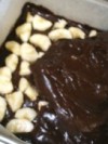 | 5. | カットしたバナナをはさむように、紙を敷いた型に流し入れ、できるだけ空気抜きして表面を平らにする。 170度に予熱したオーブンで約20分。表面がカリッとしたらOK。型に入れたまま冷ます。 |