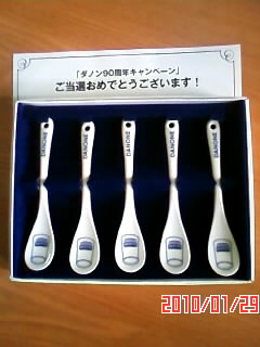 今日は日がさして道路の雪がだいぶ溶けはじめています晴れていると気持ちがいいなぁ♪さていろいろお届けものが届きました。1月の最後にうれしいお届けが続きました。ダノンオリジナルスプーンこちらダノン90周年キャンペーンでの当選です。陶器のかわいいスプーンでした。オリジナルフォトフレームにしか応募してないと思ったのだけれどこちらにも応募していたみたいです。W賞狙いだったのかも!まだキャンペーンやってますよ♪ ダノン90周年キャンペーンP&G詰め合わせセットツルハ×P&G「主婦店員が選んだ今ほしいものキャンペーン」でのW賞でした♪アリエールにジョイ、ファブリースです。どうもありがとうございます!秋田のりんごジュース30本秋田に帰省したとき見つけたフリーペーパーで応募しました♪お出かけしたときとかに持っていこう。うれしいお届けです♪おーいお茶詰め合わせ日本のお茶「おーいお茶」選べる日帰り温泉プレゼントキャンペーンでのB賞でした♪お茶、大好きなのでうれしいです。今日は飲み物がたくさん届いてうれしいです(*^_^*)各企業の皆さまありがとうございます!!!クリックしていただけるとうれしいです!にほんブログ村Designed By チワワン子