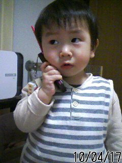 ソウタ、4月15日で1歳9ヶ月になりました♪少しづつ2語文も出てきておもしろいです。「ママいない」とか「大きい車~」とか(*^_^*)今まで「おっとう」だったのが「おとうさん」と言えるようになってきてこれまただんなさまは嬉しそうです♪先週から始まった講習も、最初は泣いていた託児。1週間でだいぶ慣れたようで、私と別れてすぐは泣いてもあとはケロっと遊んでいるようでうれしいです♪1週間でずいぶん成長したみたいです。夜も寝てくれるようになったのでだんなさんにソウタをお願いして先週の土曜日、とってもひさしぶりに一緒に保育園で働いていた仲良しのお仲間さん達と飲み会に行ってきました!夜7時に集合して解散したのが2時。7時間もおしゃべりしてたくさん笑って楽しい時間を過ごしました!だんなさま、ソウタありがとう(*^_^*)ママはすんごいリフレッシュできたよ!今週の土曜日には私とソウタがちょっぴり早いGWで実家に帰る予定です♪だんなさまは28日夜に出発。今週も元気に過ごしていきたいな!電話している息子くん。すっかり私の会話真似されます。「ばあば、うん、うん。あはは~。バイバイ!」Designed By チワワン子