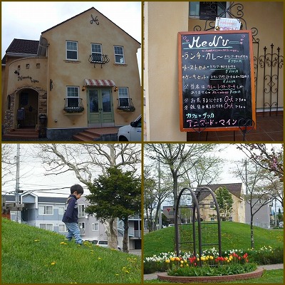 今日は岩見沢にソウタとおでかけ♪お家の片づけで出てきた不用品をブックオフ&オフハウスに売りに行ってきました。ちょうどランチ代くらいになったのでソウタとどこかでご飯を食べて帰ろうと思ったらブックオフの後ろの通りにかわいいカフェを発見!アニマード・マイン岩見沢市大和3条6丁目28-1 TEL 0126-24-3486昨年オープンしたお店みたいで外観がとってもステキで気になったのでとりあえず車を停めてメニューを見ることに。カレーセットとトーストセットとケーキセットがあって今日の朝はサンドイッチだったのでカレーがいいかなと思いつつ辛かったらソウタ、食べられないし・・・と思っていると雑貨を見るだけでもOKの文字が。それならばまずは入ってみようと入ってみました♪アンティークの雑貨たちや手作りの小物などがあってソウタと「かわいいねぇ」と言いながら見てました。お店の方にカレーの辛さを聞いてみると「甘めだから子どもでも大丈夫だよ♪」とのこと。なのでソウタとカレーセットをいただいてきました。手作りのカレー、美味しかったです(*^_^*)ソウタにチョコボール(3歳までチョコはおあずけなので食べれなかったけど)やりんごジュースをサービスしてくださって、「男の子ってかわいいよね~。」と男の子のかわいさについていろいろお話してくれて(お店の方にも息子さんがいるそうで♪)とってもしあわせなランチタイムになりました!ランチの後はお店の前の公園ですべりだいをしたり小さな丘をしゅーっとくだって遊んだり・・・今日も楽しい一日でした。仔豚ちゃんの置き物とかかわいかったんだけどネットだと同じようなの探せなかった・・・(>_