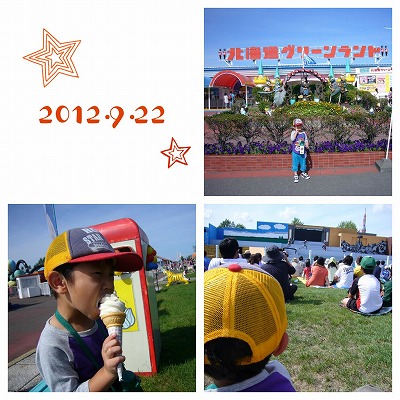 おはようございます♪今日は幼稚園の行事、りんご狩りソウタは水筒を持ってはりきって幼稚園に行きました。土日はだんなさまも仕事がなかったので家族で楽しく過ごせました。土曜日はだんなさまとソウタで午前中仮面ライダーのショーを観に行きました。ちょうどグリーンランドの入園券が当選していたのでそれを使って(*^_^*)ショーはもちろんアイスを食べたり、ドライブカーにも乗って楽しかったみたいです!そして午後からは苫小牧でだんなさまが聞きたい講座があるというので家族でおでかけ。ソウタとカホと私は苫小牧イオンで過ごしました。服やおもちゃを見たり、ゲームをしたりイベント会場で木のブローチを作ったり写真を撮ってもらったり・・・。ソウタはアンケートに答えてできるスロットゲームでメロンを3つそろえ1等3000円のイオン商品券をゲットしました♪夕食もイオンで食べて楽しい一日になりました。日曜日は次につづく。Designed By チワワン子