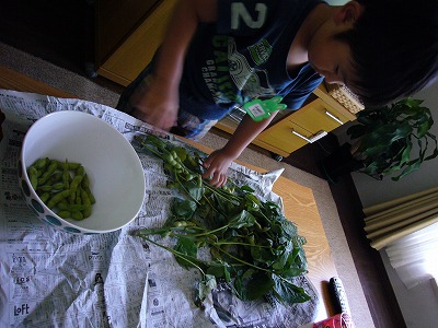 先日、ソウタが幼稚園から枝豆をもらってきたのでソウタにもいでもらった。虫食いのところとかはとって茹でて食べたら味が濃くて美味しかった!ソウタの幼稚園、畑で野菜を育てていてミニトマトやピーマンも何度か持って帰ってきた。ピザトーストにしたらピーマンもおいしいって食べていたし自分がとったものはやっぱり違うのかな。ありがたいなぁ、幼稚園♪この夏はまわりのいろんな方に野菜をいただく機会が多くてとってもありがたく助かりました(*^_^*)トマトはそのままでもたくさん食べたしパスタ用のトマトソースやトマトいっぱいのハヤシライスも作ったなぁ♪ミニトマトはおやつ代わりにもパクパク、お弁当にも大活躍☆ささげやナス、ピーマンにパプリカ、とうもろこしもいっぱい食べた!本当にありがたいことです!どうもありがとうございます(*^_^*)Designed By チワワン子