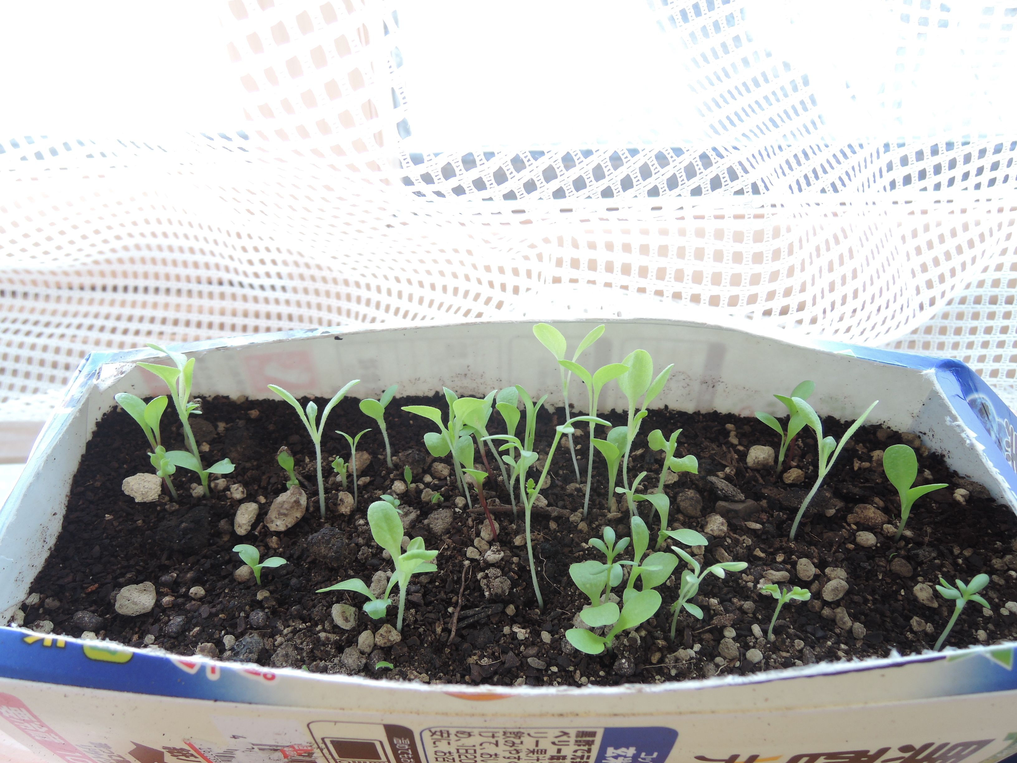 最近は晴れの日が多くて引きこもりのワタクシもニコニコ気分です今月初旬に撒いた野菜の種もようやく芽が出てきて、こんな感じに↓↓↓↓サラダ菜↓アイスプラント↓ラディッシュ↓ネットを見てたら、使い終えた牛乳パック(廃材利用)を鉢にしてやってる方がいたのでマネしてみました。かぼちゃ(畑移植用)↓パクチー↓なすきゅうりピーマン夏野菜(なす、きゅうり、ピーマン)の苗は購入して植え替えました。1ヵ月後、2ヶ月後、狭いベランダでうまく育ってくれるといいけど。今週から長期実家帰省するので心配です(^-^;それから久々にHB(ホームベーカリー)でパンを焼いてみました。くるみとチーズを細かく刻んで入れてみたら、チーズは跡形もなく溶けて味しないし、カットしたら中は空洞だし、なんだか失敗HBで失敗するって、どんだけ要領悪いんだか...悲しい。一応食べれたけど、家族の反応は...でもこのHB、かなりの年季物で、17年も経っているのによく働いてくれてます(人''▽`)☆パンが好きな私は当時よくHBを愛用していたのですが、今じゃパン買ってばかりで、それはそれでいいのだけど、パン好きパン子だった私は何処に...今年はもっと努力研究してパン作りにいそしみたいなぁと思っておりますm(__)m...って、日記に書いて自分でハードルあげとかなきゃね~皆様のブログを拝見して影響うけつつガンバリま~す(^^)/今日のつぶやきでした