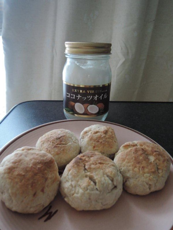 以前購入したココナッツオイルですが、色々なものに混ぜて使っていて、一番ハマっているのが、ココナッツオイル入りのスコーン。スコーンはイギリスのパンで、ジャムやバターなどを添えて食べるんですが、これが昔から大好きでして、カフェなどで見つけると必ず頼みますが、この辺りにはスコーンなんぞ出してるお店はほとんどないし、似たようなものと言ったら、ケンタッキーのビスケットぐらい。まさかビスケットの為にケンタッキー買うのもなんだし…ということで、スコーンは本当にしょっちゅう作ってます。本来はバターを練りこむんだけど、ココナッツオイルにしたら香りも良いし美味しいし、体にも良い。それから、ビスコッティにもココナッツオイルいれました。今日はフルーツグラノーラ入り。ビスコッティはイタリアの焼き菓子で、ビスコッティとは「2度焼いた」という意味らしいです。言葉の通り、2度焼きます。まずは長方形ぐらいに引き伸ばした状態で焼いて、それをスティック状に切ってからまた焼きます。水分がほどんどない固焼き菓子なので日持ちがします。ビスコッティを食べる時はコーヒーに浸して食べるのが美味しいと言われてるみたですが、私はそのままサクサク食べるほうが好きかな。その他、ココナッツオイルをカレーに入れたら、ほど良く香ってグリーンカレーのようなタイカレー的なエキゾチックな感じで美味しかったです。ココナッツオイルは繊維が多くコレステロールも溜まりにくく代謝が良くなるらしいのでgood油類も健康を意識して色々使いわけると世界が広がって良いですね。アマニ油・米油はこれから使ってみますが。…って、次は何オイルが流行るのかしら?