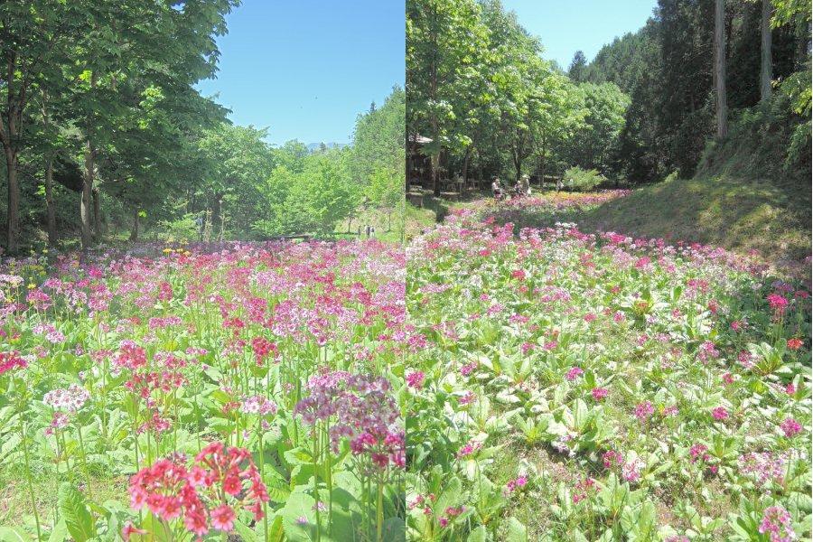 今日はウチのあたりは最高気温29度ありました~暑かった~こうしてどんどん夏に近づいていくんですねぇ夏好きだからいいけど、なんだか季節がアッという間に過ぎてって、月日が過ぎるのが早く感じる今日この頃…年かな今日は近く?(10km圏内)の九十九谷森林公園というところへ九輪草(クリンソウ)を見に行きましたクリン草が群生していているお花畑で、初めて見たのですが結構可愛らしいお花(山野草)でしたクリン草は今が見ごろの満開で、色とりどりのお花に囲まれて幸せの花園にいる心地いい~気持ちになりましたクリン草の花言葉は『幸運を重ねる』だそうです生きてると色々あるけど、辛いことを数えるより幸せを数えて(重ねて)、クリン草のように健気に鮮やかな気持ちでいつも過ごしていきたいな~と思うのであります(ん…文章硬い!)様々な色がありましたが、皆さんはどの色がお好き?ホワイトピンクレッドミックスカラー花園のあとに久々に畑に出勤今のところ収穫できるのは苺しかありません(今日は8個だけ)これからゴイゴイ実が生ってくれれば嬉しいなぁ