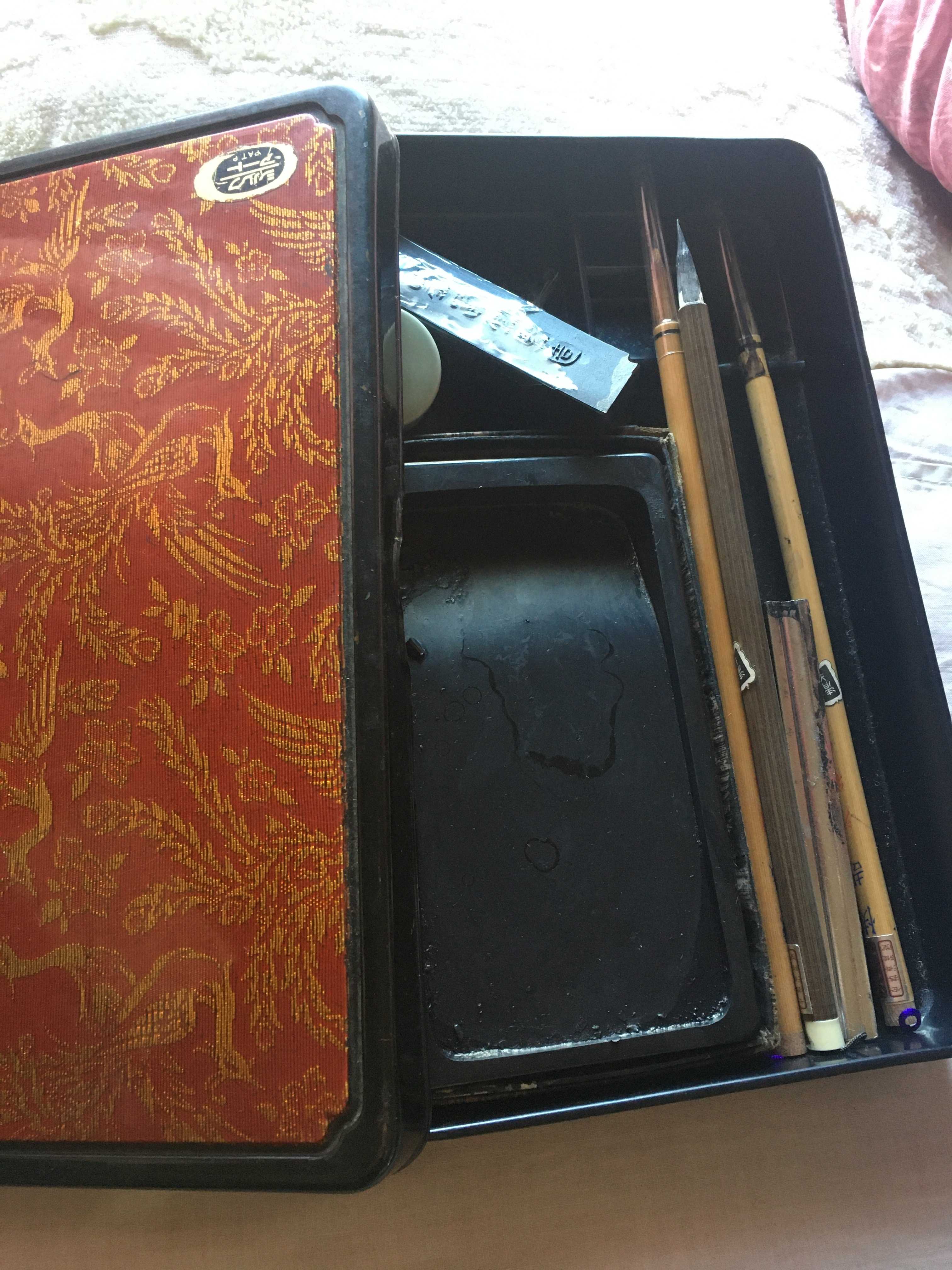 数年前から習っているペン習字。それとは別に、昨年おばあちゃんから貰っていたおじいちゃんの毛筆セットがあったんだけど、写経をする中で、筆で書くことがとても楽しくてなってきて、たまたま写経に通っているお寺の坊守さんがお習字の先生で、毛筆のコツとか、硯と墨の上手な使い方を教えてくれて、これ!めっちゃ楽しいやん!となり、思っていたより面倒くさくもなくて、これなら楽しく続けられるやん❤️ってことで、家でなぜかあった毛筆の通信教育の冊子があったので楽しく1人で練習してる!ついでに、ちゃんと墨をすって写経も始めた!楽しい〜(^∇^)