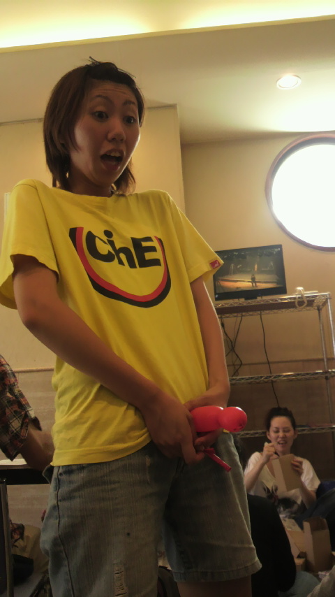 初日に受付でひいきの役者の名前を言うと、なぜかmochaの手作りバッヂがもらえます〓