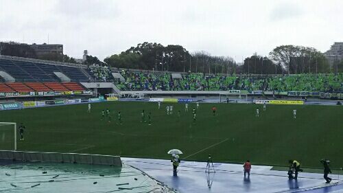 【サッカー観戦】 J2 第7節 東京ヴェルディ×湘南ベルマーレ 駒沢オリンピック公園総合運動場陸上競技場 5連勝で首位に浮上した東京Vと昇格候補の湘南が試合をすると言うことで駒沢公園へ‼天気予報は曇りでしたが完全に雨…。 試合は好調東京Vが安西のゴールで先制!が、湘南も黙ってません‼菊地のミドルですぐに追い付くと勝ち越しゴールを奪ったのは湘南。山田のシュートがGKに弾かれるがこぼれ球をジネイが押し込み前半のうちに逆転。 1-2で後半へ 逆転した湘南は勢いそのまま神谷のコーナーキックから再び菊地が決めてリードを広げる。その後は選手交替で流れを変えたい東京Vですがなかなか上手くいかず、終了間際に安在のミドルで1点を返すが直後に試合終了。 東京Vは先制までは調子の良さが見えたが湘南に追い付かれ逆転されると難しい時間が続いてしまった…。次節どうなるか?ズルズル順位が下がらないように修正が必要かと。 一方、湘南は先制を許すが前節の完敗を忘れさせる落ち着いた逆転勝利。最後の失点はノーチャンスですがGK秋元の負傷の具合は気になるところでしょう。 J2 第7節 東京ヴェルディ×湘南ベルマーレ 2-3 安西 幸輝、安在 和樹 - 菊地 俊介×2、ジネイ
