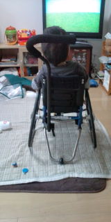 チビは、最近車椅子デビューしました とても小さな車椅子です。 乗り心地はいいらしく、毎日お家の中で練習してます。 とっても上手に車輪を回してますよ 写真では、ちょっと休憩してテレビを観てます かわいいです