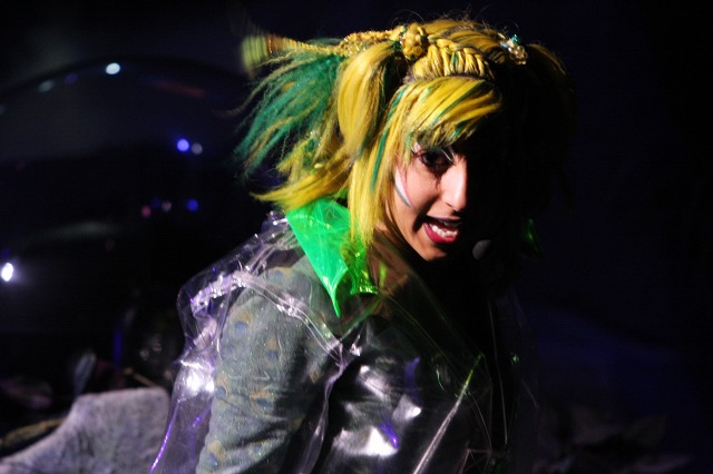 本日のインパ、正午頃より小雨が降り出し体感気温がグッと下がった感じです。いや、秋ですね。秋刀魚、柿、梨、松茸(私の家では食べませんが)その他いろいろ美味しいモノで馬肥ゆる季節です。そんななか今日もキャストさん撮影会、失礼トリック・オア・トリートをたくさんの常連さんのみなさんと楽しみました。久しぶりにユニモンへ、ユニモン撮影の達人の方に撮り方のヒントを教えてもらいましたが、やっぱり止まりませんでした。多分、恐らく(そう願いたい)被写体ブレの数々でした。これはこれでいいと言うことで。on USJ UNIVERSAL MONSTERS LIVE ROCK AND ROLL SHOWEOS 40D EF70-200mm f2.8L IS