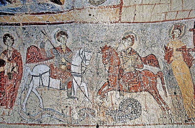 「聖ジョージとドラゴン」の絵画は、キリスト教信仰の広がりと共に、東方や南方に広がっていきます。聖ジョージとドラゴンの組み合わせは、キリスト教が伝播され、信仰を具象的に表現する一事例なのでしょう。それだけでも、龍/ドラゴンという概念が広がっていく様子がうかがえます。冒頭の画像は、トルコの カッパドキアにある洞窟教会のユランル・キリセ(蛇の教会)に描かれたフレスコ画の部分図です。ここには聖テオドール(St. Theodore) と聖ジョージの二人の聖人がドラゴンを退治する図が描かれています。この絵は暫定的に10世紀あるいは、9世紀半ばに描かれたと考えられています。 (資料1,2) (以下、出典を付記しない画像は、資料1からの引用です)まずは東方への広がりから始めます。龍探しが主眼ですので、この聖ジョージのドラゴン伝説そのものには、直接触れていませんでした。既に参照資料にアクセスしていただいた方にとっては、いまさら・・・のことになりますが、その伝説はこのカッパドキアという地域に起源があるようです。カッパドキアの首府ラシア近くに巨大な悪龍が棲んでいて、人々は日々羊の生贄を捧げていたと言います。羊が尽きると、人身御供を捧げることに。王の娘がその人身御供になるくじを引いたのです。悪龍の話を聞いたキリスト教徒のジョージが、王の娘を救出し、龍を退治したと言います。その結果、人々はキリスト教の教えを受け入れたとか。尚、この伝承は、キリスト教以前にすでに起源があり、9,10世紀には、聖テオドールの龍退治として伝わり、11世紀に聖ジョージの伝説に結びついていったとも言われています。(資料1,3)まあ、ここでは、聖ジョージを介して、龍/ドラゴンに着目していきましょう。 こちらも、聖テオドールと聖ジョージの二人ですが、聖テオドールがドラゴン、聖ジョージが敵対する人間を殺す図として並べて描かれています。9~10世紀の作。(資料1) 聖ジョージとドラゴン イコン ジョージアの地方自治体蔵 12世紀の作ジョージアはトルコの東、黒海の南東側に面した国です。(尚、このシリーズの49 西欧の龍(3)に、先走って引用してしまった画像があります。) 蛇に関わる聖ジョージの奇蹟 イコン 14世紀半ば ノヴゴロド、ロシア(英文は Miracle of St. George about the snake。だがドラゴンのイメージですね)聖ジョージとドラゴンの奇蹟 イコン 14世紀末 ロストフthe Museum of the Russian icon 蔵(モスクワ) 聖ジョージのドラゴン退治 七宝焼エナメル加工 15世紀 ジョージアArt Museum of Georgia 蔵 聖ジョージのドラゴン退治 イコン 15世紀末 ノブゴロド、ロシア State Russian Museum 蔵 聖ジョージのドラゴン退治 イコン 15世紀末~16世紀初期 ロシア北部 聖ジョージのドラゴン退治 Chelm-Belz 派のイコン 16世紀 ウクライナ南方への広がりに移ります。エチオピアに聖ジョージとドラゴンの伝説が伝播しています。 大三連祭壇画の一部 木に貼った布地に描かれたテンペラ画Museum Rietberg 蔵(チューリッヒ、スイス) こちらが祭壇画全景。左下側が上掲の部分画です。 Alwan Codex(古写本)27 エチオピアの聖書のイコン 20世紀Hill Museum & Manuscript Library 蔵「iStock」のサイトで、修道院の聖ジョージの壁画に出会いました。エチオピアのタナ湖の傍にある修道院のようです。 (資料4)これを糸口に、別の壁画等を見ることができます。「アザライ/AZALAI」のサイトで、エチオピア正教イコンのページに出会いました。これが現在販売対象になっているイコンの例です。 (資料5)また、「MEISTERDRUCKE」というサイトで、イタリアのボローニャで出版された「蛇とドラゴンの歴史の本」に収録のエチオピアのドラゴンの図像に出会いました。本の著者なのかドラゴンのイラストの画家なのか、判然としませんが、ウリッセ・アルドオロヴァンディ作と明記されています。 (資料6)この辺りで、一旦西欧からの龍の広がりについては終わりとします。つづく参照資料1) Saint George and the Dragon From Wikipedia, the free encyclopedia2) Churches of Goreme From Wikipedia, the free encyclopedia oウムラウト付き3) 聖ゲオルギオス :ウィキペディア4) 修道院の聖ジョージの壁画, タナ湖, エチオピア :「iStock」5) エチオピア正教イコン :「アザライ AZALAI」6) エチオピアのドラゴン「蛇とドラゴンの歴史の本 2」、ボローニャ、ウリッセ・アルドロヴァンディ作 :「MEISTERDRUCKE」補遺トルコ カッパドキアの洞窟教会 :「東方ビザンチン美術紀行」Eparchy of Chelm-Belz (Ruthenian Uniate Church) From Wikipedia, the free encyclopediaTheodore Tiron From Wikipedia, the free encyclopediaエチオピア世界遺産・ラリベラの岩窟教会群!王が夢見た第二のエルサレム :「skyticket」エチオピア正教会 :ウィキペディア ネットに情報を掲載された皆様に感謝!(情報提供サイトへのリンクのアクセスがネット事情でいつか途切れるかもしれませんその節には、直接に検索してアクセスしてみてください。掲載時点の後のフォローは致しません。その点、ご寛恕ください。)こちらもご覧いただけるとうれしいです。観照 