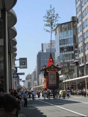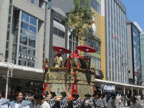 山鉾巡行は、後祭の場合には烏丸通御池が出発点となり、河原町通御池まで、御池通を東に進み、河原町御池で辻回しをして、河原町通を南進します。