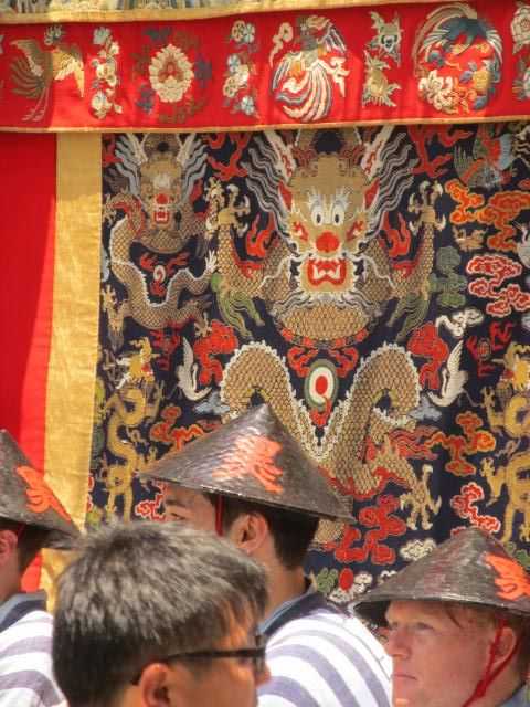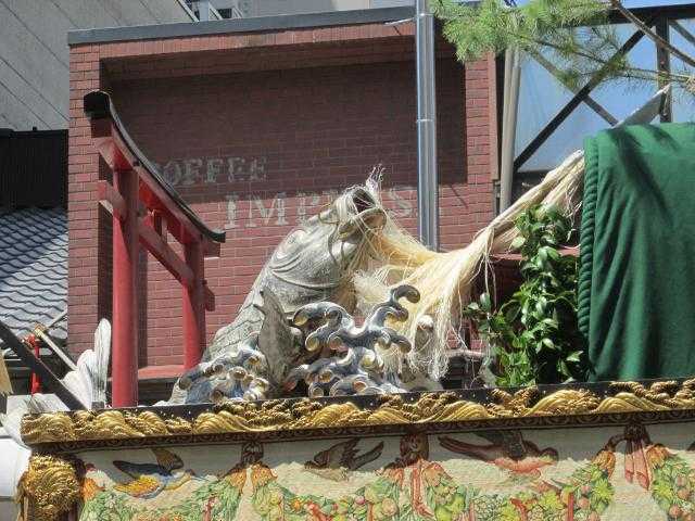 前に鳥居が立ち、鳥居をくぐる形で大鯉が搭載され、 大鯉の瀧上りの雄姿