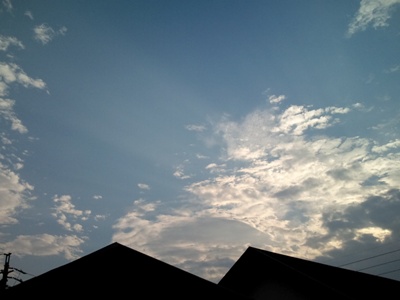 久しぶりに部活が動き出しました・・・まだ練習は開始してないけど、今日の昼先「おい、マル」マル「はい?」先「おまえ・・・卓球部入るのか?」マル「まぁ、入りますけど」その後すぐに教員室に連行され・・・顧問「部員がね、あなたを入れて3人なので あなたが部長ね よろしくね」マル「あぁ そうですか 部長ね・・・は?私が部長っすか?!」闘争心の欠片も無い私が部長て・・・卓球はたしなむ程度が好きなんで、部長降ろさせてくだsa(殴今日は綺麗な空だったからベランダから空の写真撮ったドー鳥にみえるような・・・象か馬に見える・・・