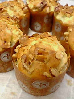 6: マフィンカップ の8分目まで生地を入れ、残りのクルミを上から散らす。