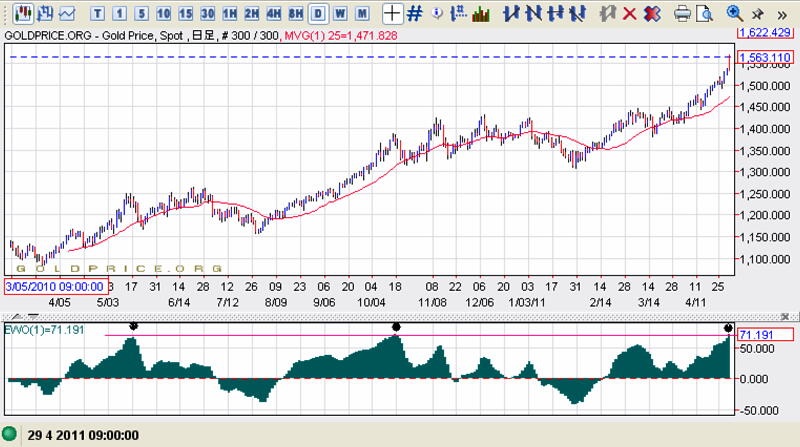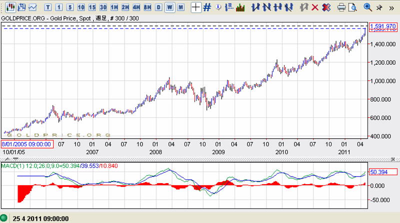 Goldは$1578まで上昇して高値を更新した。終値は$1565.78。