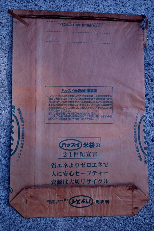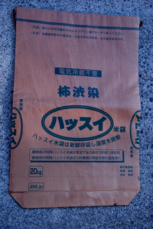さて、今日は待っていた品が届いた。去年の秋に100kgも買ってしまった「あきたこまち」の玄米の保存をどうするか考えて、ネットで探したら「 柿渋ハッスイ米袋