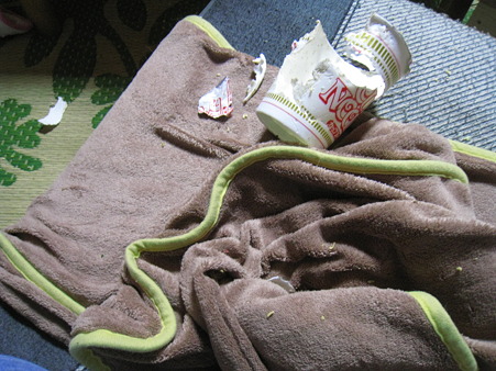 こんばんふぃっしゅ~寒いね最近は寝る時に足もとにあっさん・肩から腹にかけてとまさんがべったりとくっついて寝てくれるのでありがたいです夏は暑くてソファで寝るかとか思ってたけどあったかくて幸せですただ身動きとれないので腰と背中が1日中痛いですしかもとまさんは体重をずっしりかけてくるので重いです幸せな重みだと我慢するしかないんでしょうか数時間するとガンガン足蹴りにされるんだけども自分たちばっか寝返ってずるいとか思うんだけども飼い主は我慢するしかないのか悩む日々ですわたし近所のファ●マが嫌いでね普段絶対行かないんだけど今日久々に行ったんですよ相変わらず酷い店員ばっかで『客いるのに店員同士で遊ぶなよ・・・』とか思いながら買い物してきた訳ですよ遊ぶ店員を後ろからストゥカーしてやろうかと思う程でしたよファ●マでしか買えない商品でも別のファ●マにしようと心にかたく決めてそんで帰ったらですよ数時間のお留守番だったのにあとまさんがすんげー歓迎してくれましてね走ったり頭すりつけたり泣いたり大騒ぎで迎えてくれましてねファ●マで疲れた心を癒されたんですよなのにコレ何だろかあの・・・ちらな・・い・・コレ何だろかあの・・・あの・・・何 だ ろ かごめんなたい詰め寄ったら自白してくれましたとまさんはですね『ごめんなたい』の時↑の様にしてくるんですよわたすの口にね、鼻やら口やらつけて『ごめんなたい』なんですよ今日もされたんですがもっそカップぬぅ~どぅるの匂いでしたばかあんなの人間でもお腹いっぱいになるんだよ・・・なので今日は晩御飯抜き味の濃いの食べてお水ばっか飲んでるのでおむちゅです今日はぷぅさんですばか・・・嫌いなファ●マでの買い物まさかのカップぬ~どぅるかぶりごはんバージョンあんまないって聞いたんでつい買ってしもたカップ麺全然食べんのに・・・とりあえずとまさんに食べられないようにきっちり片付けます処で大犬奥むすびと言うなら俵型でふぉだと思うんだけどもソコんとこどうなのよやっぱもうファミさんはいいやwカレー味じゃない方選んだから許ちて?許すか!!!ボクの出番は?・・・・・・・・・・・・・・あ。えっと・・・じゃぁ・・・はい。