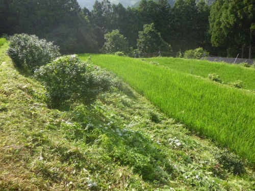 堅そうなタイトルでしょ簡単に言えば荒れた農地に人は住めないってことで地域の人で農地とその周辺道路とか用水など維持管理をしながらその農地には作物を作り荒らさないようにすることですそうすることでお上から若干のお助けがあります。話がまだ堅いか!やはり言葉で伝えるのは難しい写真が伝えやすいなこんなことやるのです大勢で草刈正雄やってるとこですじゃぁ
