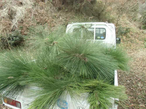 久しぶりのブログでタイトル何を書いたら良いのやらわからなくなりました皆様三無沙汰四無沙汰六無沙汰 あっ!行き過ぎたご無沙汰しています。ワタクシは上勝の山奥で元気に生息していますよ~今年もいろいろありましがブログ横着してる間に年末がやってきました上勝町の年末といえば上勝名物葉っぱビジネスが一番忙しい時なんです苦しみますとか忘年会とかお正月とか元旦とか新年会とかおせち料理などに葉っぱが使われるからです。畑に行って葉っぱを収穫しました。これは大王松と云って葉っぱが長いのが特徴です。使い道は料理のどこかに飾られるのでしょう。これは、ゆずり葉と云います。縁起の良い葉っぱらしいです使い道は料理のどこかに飾られるのでしょう猫の手も借りたいのだが猫飼ってないので息子とオカンの手を借りましたこの時期どの農家さんも大忙しなんです息をする間も勿体無いので丸一日呼吸をしないまま作業してます。作業が終わって呼吸をしたら空気が美味いのなんのきょうののうきょうは葉っぱが大量にいっぱいドンドン持ち込まれてましたごった返してますもう今年は多分ブログ書くことがないと思うので皆様よいお年を迎えてくださいじゃぁ