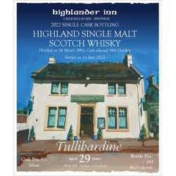 皆川氏サイン入り ロットNO入りポスター付 タリバーディン1993 29年 45.2% 700ml 49940円(税込)【ハイランダーイン・クライゲラキ 2022シングルカスク・ボトリング】スコッチ要衝の地、スペイサイド・クレイゲラキ村の“ハイランダーイン”からアニュアル・リリース(年1回)2022年シングルカスク・ボトリングが到着しました。世界的なコロナウイルス蔓延のため久しぶりのリリースとなる今回も、同インのダイレクターとして手腕を振るい、2015年にオーナーとして復帰した皆川達也氏が中心となりテイスティングを重ね、素晴らしい一樽が選定されました。ラベルデザインはお馴染みオランダのアーティスト、ハンス・ディレッセ氏(Hans Dillesse)。皆川氏とは長きにわたり親交を深め、ディレッセ氏自身もかなりのウイスキー愛好家。今回も素敵な作品に仕上がりました。【TASTING NOTES】北梶 剛 / RUDDER LTD. 代表取締役社長香り:バニラ、若いイチゴとマスクメロン、後から濃厚な麦芽の香りとライ麦パン。味わい:バナナケーキ、マドレーヌ、ビスケット、クリームパン、キャラウェイリキュール、クリーミーでオイリーなボディから徐々にスパイシーに変化する。フィニッシュ:アカシアの蜂蜜、ジンジャー、ホワイトペッパー、わさび。スパイシーでビター、優しく中程度に続く。コメント:時間の経過と共に菊の花、紫蘇や大葉、徐々にフローラルでハーバルな香味が顔を出す。スイーツ好きなハイランドの女王があなたの帰りを待っています!(輸入本数48本)