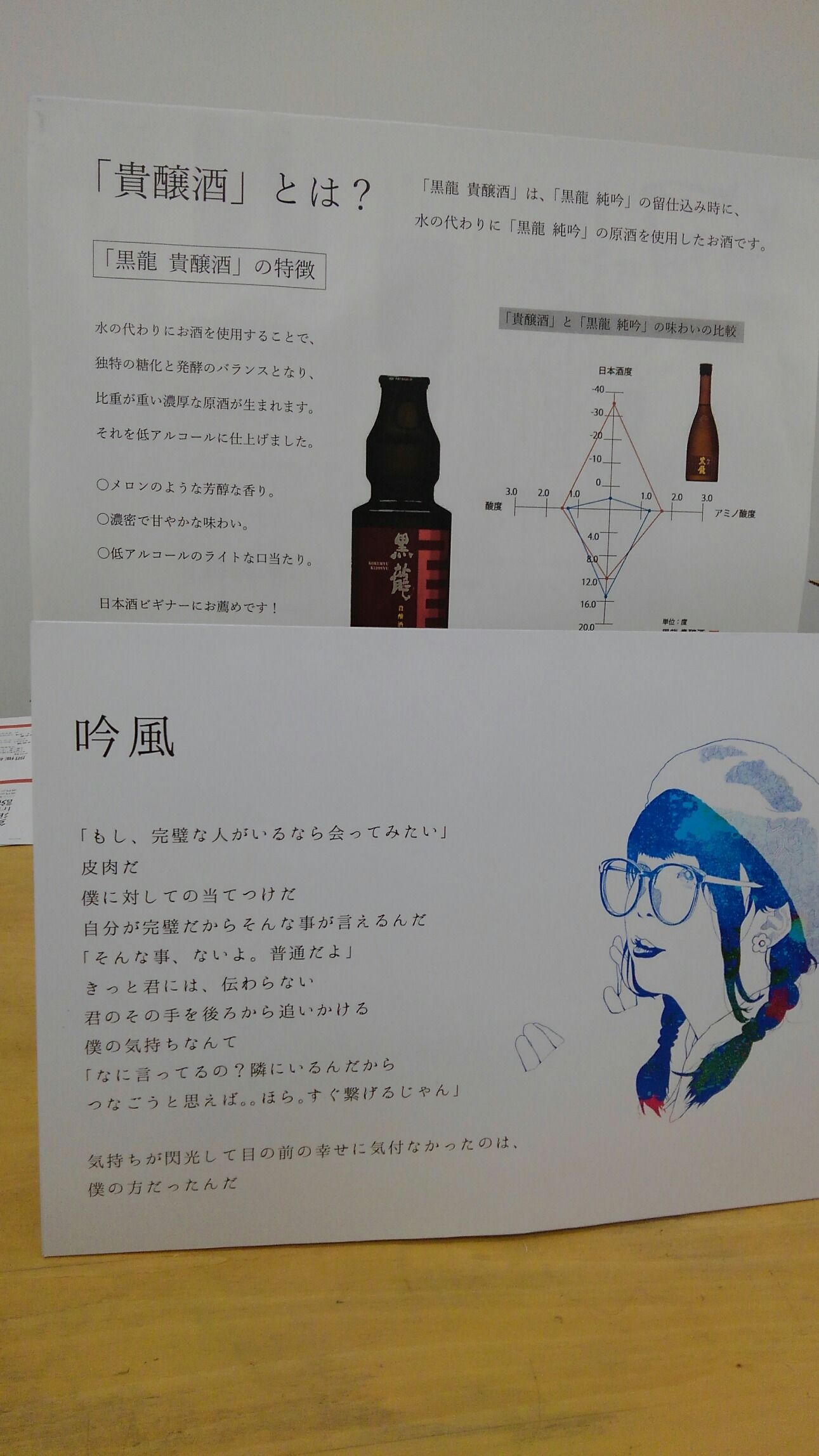 昨日第二回酒門の会の一般向け利き酒会のお手伝に末広町の元小学校を改良したイベントスペースArts Chiyodaまで昨年に続き行ってきました何と今回は蔵元の営業さんと社長の娘さんと一緒に黒龍ブースのお手伝いの大役を任され第一部、第二部と開始早々のブースラシュで瞬く間に試飲ボトルは空になり特に今回人気だったのが黒龍の貴醸酒をガス注入した特別提供したパフォーマンスはとても好評で早い時間に完売1部、2部で300人参加したイベント今回も大盛況で幕を閉じその後打上、2次会とようやく休めましたが流石に朝10時から夕方6時までほぼ立っぱなしで今朝は足も腰もガクガクの状態でした、当店からもお客さんが何組かご参加いただきお疲れ様でした、また来年もやるそうなのでお楽しみにしてください