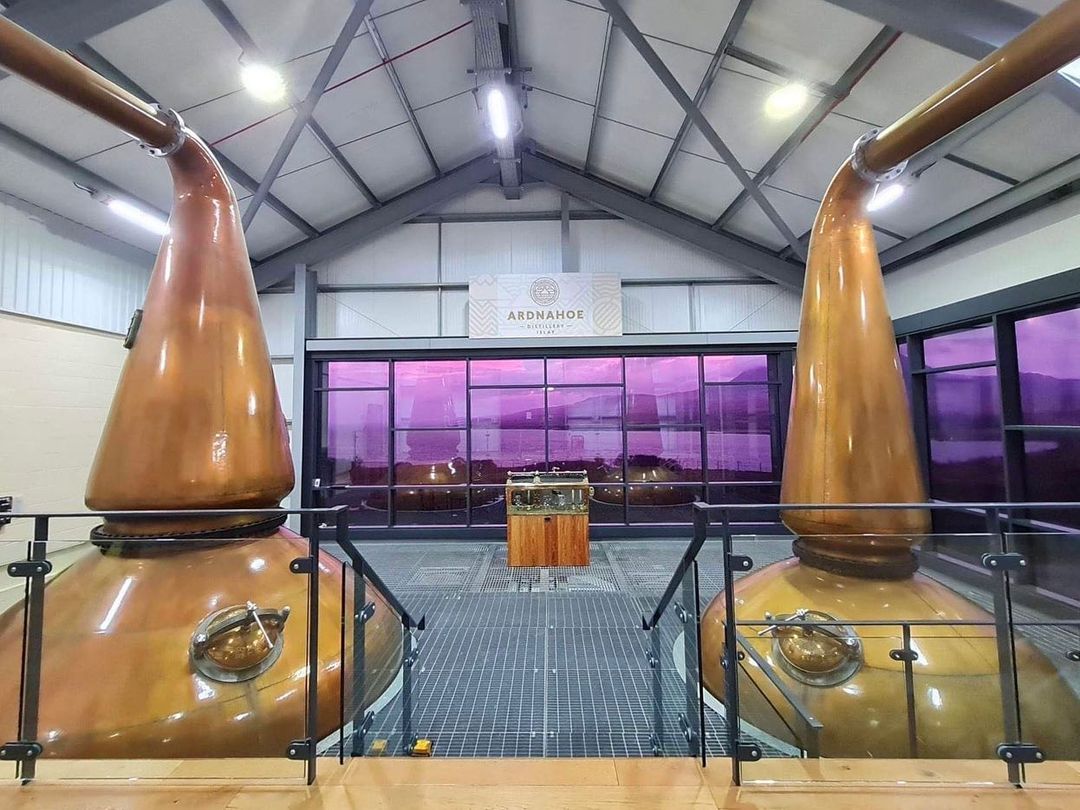 年、スチュワート氏は息子であるアンドリュー氏、スコット氏とハンターレイン社を設立し、「自分たちの手でウイスキーを作る」という長年の夢に向かって動き出します。そして紆余曲折の後、彼らは 2015 年にアイラ島の北東部、アードナッホー湖畔にある土地を購入し、 2016 年後半には蒸留所の建設に着手、 2018 10 月に蒸留を開始しました。