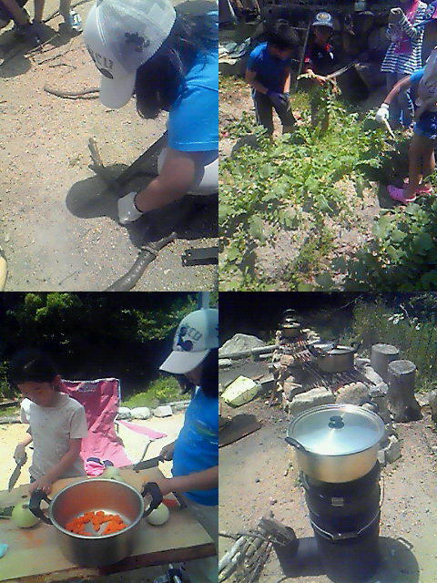 木を切って薪にして、畑で育てておられる大根の間引きとラディッシュね収穫を体験させて頂き、カレーを作り…娘達は大喜びでした。