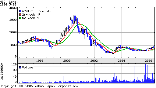 新興市場ではマザーズ、ヘラクレス、Jストック指数が連日で安値を更新。ジャスダック平均も2月20日につけた安値を更新するなど下値模索の状況。今はいったん新興市場から撤退してるけど、ずっと持ってたらちょっときつかったです。どこまで新興市場は落ちていくんだろう…早くまた買い直したいです。でも朝に安値更新した後はだいぶ反発したみたいだからちょっとは期待できるかなあ…とりあえずは当分様子見でいるほうが無難ですね。そして、6701NECは…『メリルリンチでは、携帯端末及びNECエレクが07/3期も赤字が続くことを前提に業績予想を下方修正したもよう。「買い」継続ながら、目標株価は1050円から780円に引き下げたようだ。』だったり…『CLSA SELL→UP 670円』 だったり。一喜一憂してはいけないけど、どうすべきか…いや、長期的にはまだまだ底辺だな。一方の8316三井住友FGは最近特に目立った材料もなく三井住友――「Buy2」継続、162万円→160万円を頼りに頑張って欲しいトコです!8894原弘産もだいぶお値打ちになってきましたよ^^分割前の100万ちょっとですからね。これは最低でも3年は持ってたい銘柄!