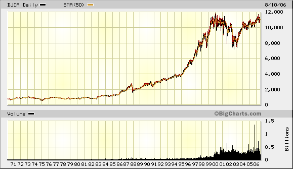 最近は狙いが定まらなくて、はっきり言って全然分かりません…寄付き前に発表されたGDPが市場予想を下回ったことで、買い一巡後は軟調展開。そんなに悪いわけじゃないけど、良くは無い。今の地合では上は期待できません。米株もここのところ景気減速や、原油価格の上昇、そして地政学的リスクが並んでどうも行き詰まり感ダラダラです。昨日のダウ平均は11124.37、ナスダックは2071.74。もちろん大きな上げ下げはあるんだけれども、どちらも大まかに言えば、ここ何年かはダウは10000とちょっと、ナスダックは2000前後って感じですよね?でも、超長期に見て、この数字ってどうなの?って思いませんか?知ってる人は流してくださいね^^僕は知らなかったので。はい、超長期のチャートを用意してみました!Dow Jones Industrial Average (INDEX)そして…Nasdaq Composite Index (NASDAQ GM)これが全貌です。ダウ平均について言えば、01~03年にかけて下降トレンドですが、ここまで長期に見るとそんなの全然関係ないくらいの上昇ですね。ダウ平均が6000の頃でも既にいつ天井打ってもおかしくない位の上昇の仕方です。一方、ナスダックは何とも言えない不思議なチャートです。仕手株系の様ですね。こっちの方はダウ平均と違って、00年で崩れちゃったんですね。でも、ニュースで『ナスダック5000…』とか言ってた時代がちょっと前にあったなんて凄いですね。日経平均の方は1970年に2500円くらい、1980年に7000円、1990年には38000円、2000年で13000円、2003年に7,607.88の安値をつけて現在って感じです。日経平均の方もナスダック以上に仕手化してますね^^こうやって考えると…インドってまだまだやっぱり大バーゲン中なのかもしれませんね。それか普通にロト6あたりがやっぱり面白いかもね。今日当選数字発表のサマージャンボ、2口買って3000円と300円×2当たりました^^回収できてませんが、庶民はこれでも楽しめます!ロト6の方はキャリーオーバー発生してますよ!ロト6の狙いはもちろん高額当選ですが、あんなの自分で選んで当てるのは無理ですね。昔は分析とかしてましたが、僕的に至った結論は、とりあえず1通りは自分に関係する数字を選んでおいて、後は…クイックピック。ですね。マジで。あれは当たればデカいですよ!自分で選ぶ事は絶対無い数字を引っ張ってくるから。理由はそれだけ。この方法はかなり良いですよ、楽だし。分散投資の一環としてあなたもどうですか?